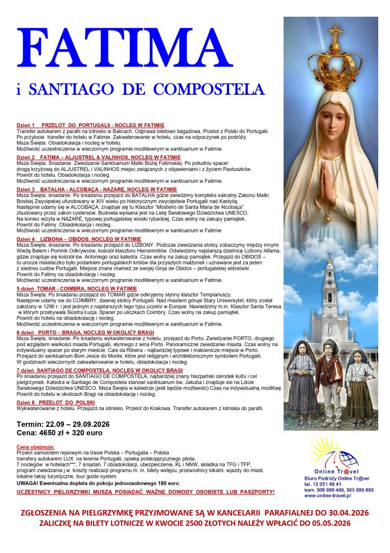 Pielgrzymka do Fatimy i Santiago de Compostela (22.09 – 29.09.2026)