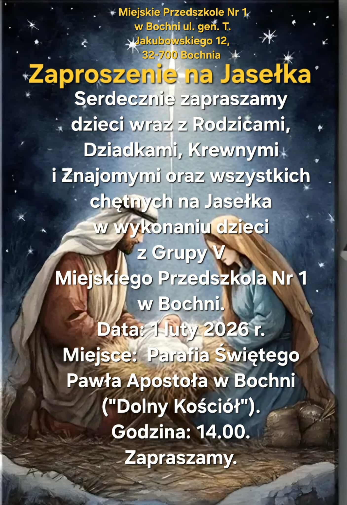 Zaproszenie na Jasełka w niedzielę 1 lutego